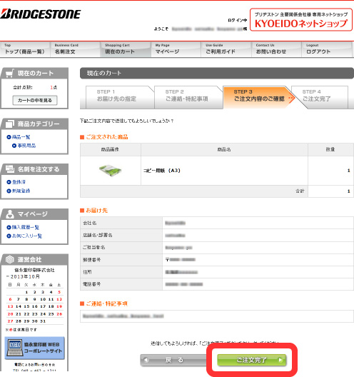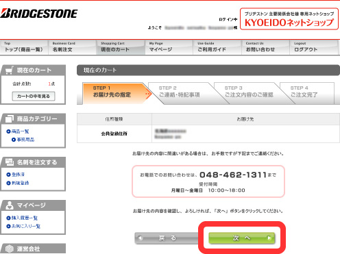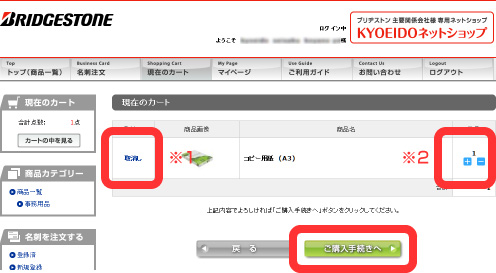 「現在のカート」ボタンを押し、ご購入手続きに進みます。