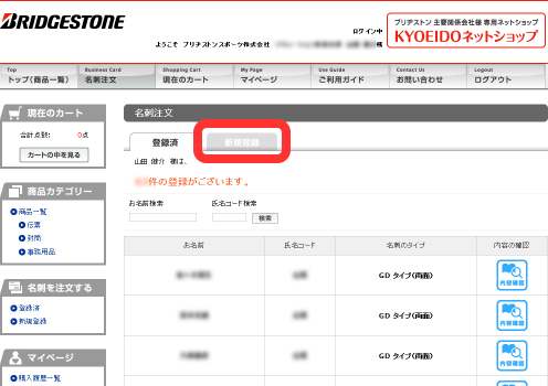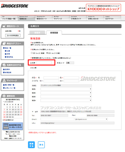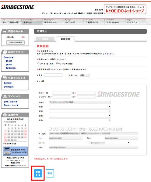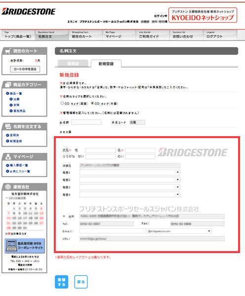 名刺に記載する情報を入力します。(白い所のみ入力)