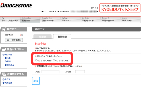 名刺のタイプを選択すると、下に専用フォームが展開します。