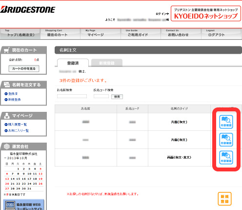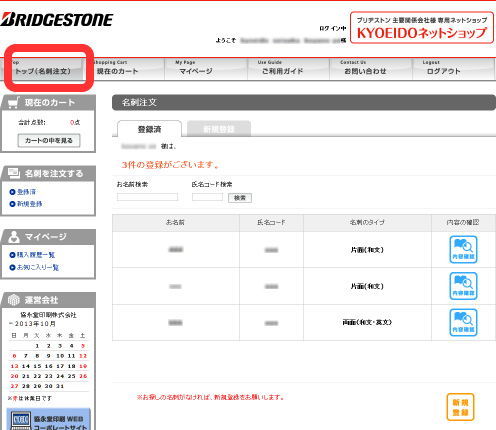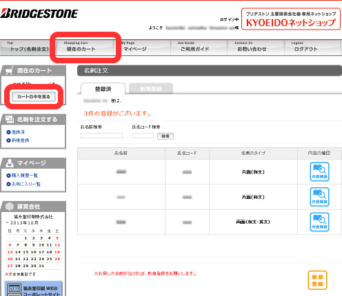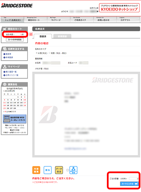 ※左上の「現在のカート」ボックスに合計点数が表示されます。