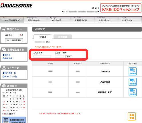 「お名前検索」欄、もしくは「氏名コード検索」欄に、