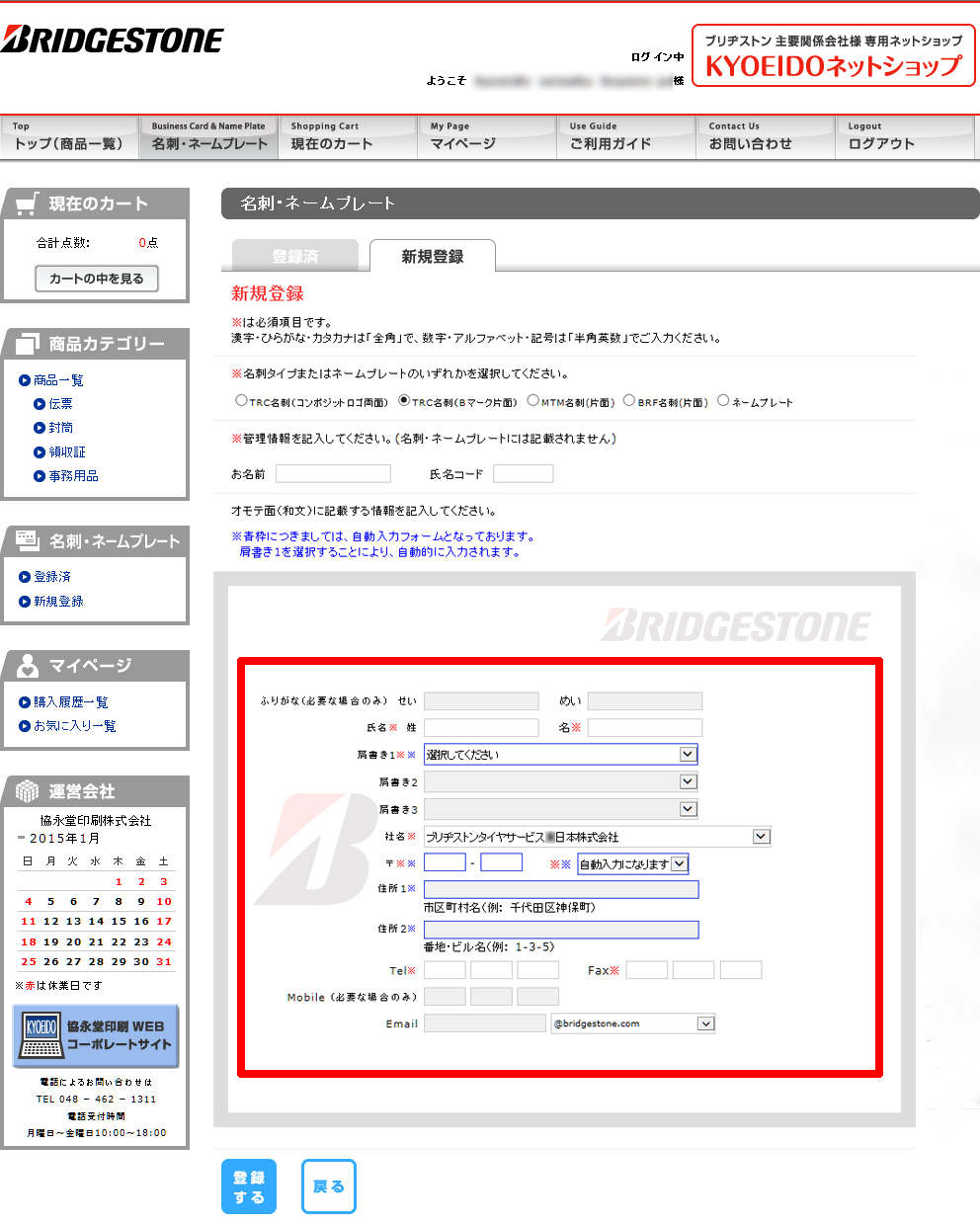 「TRC名刺(コンポジットロゴ両面)」、「TRC名刺(Bマーク片面)」、「MTM名刺(片面)」、「BRF名刺(片面)」