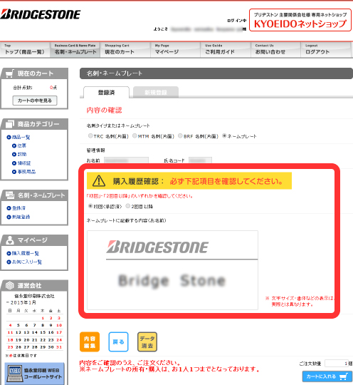 内容の確認画面で