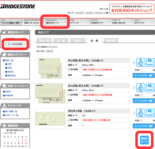 「現在のカート」ボタンを押し、ご購入手続きに進みます。